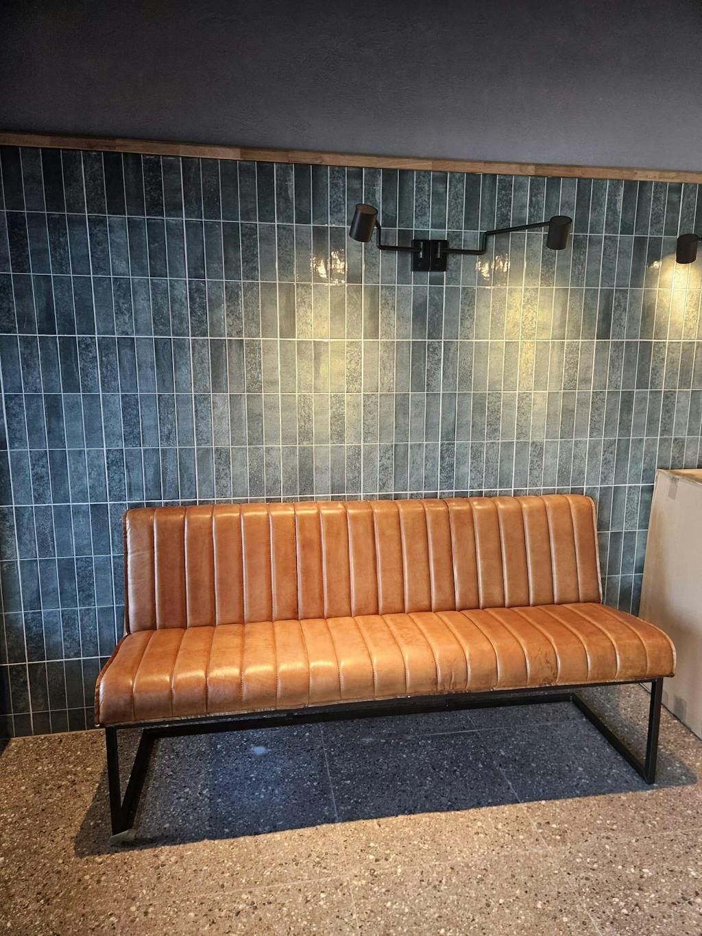 Unsere Sitzbank ist nicht mehr online, allerdings möchte ich eine Bewertung ablegen. Wir sind mit den Sitzbänken (2 Stück) sehr zufrieden. Die sehen genau wie auf den Bildern aus. Die Farbe ist Büffelleder- Cognac mit schwarzem Gestell. Super Produkt!
